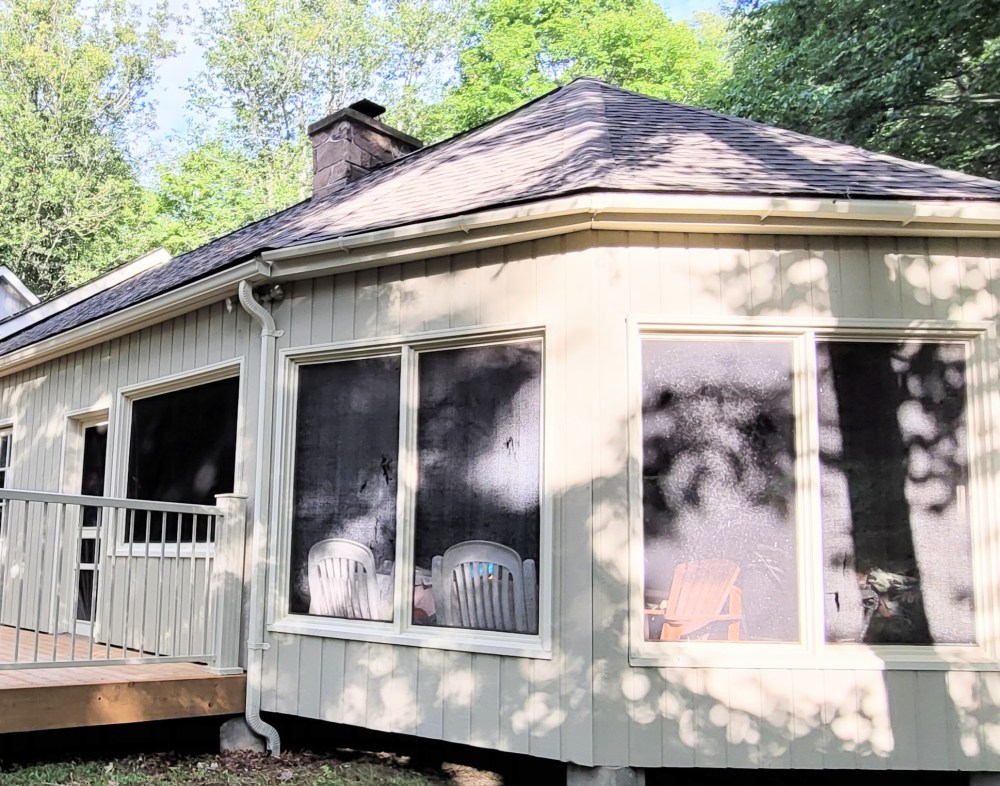 I thought I would reveal our Lake of Bays cottage renovation process to inspire you to makeover your exterior home or cottage. Our cottage needed an exterior paint job, but we put it off because the deck needed a makeover too. The priority at first was the deck because the boards were rotting and dangerous to walk on. Unfortunately, the second-floor skylight began to leak. The water made it to the kitchen breakfast area. So that trumped everything. The shingles needed replacement too. We fixed the skylight and replaced the shingles. There is future exterior work, such as an extension which we would like to do. But that will have to wait.