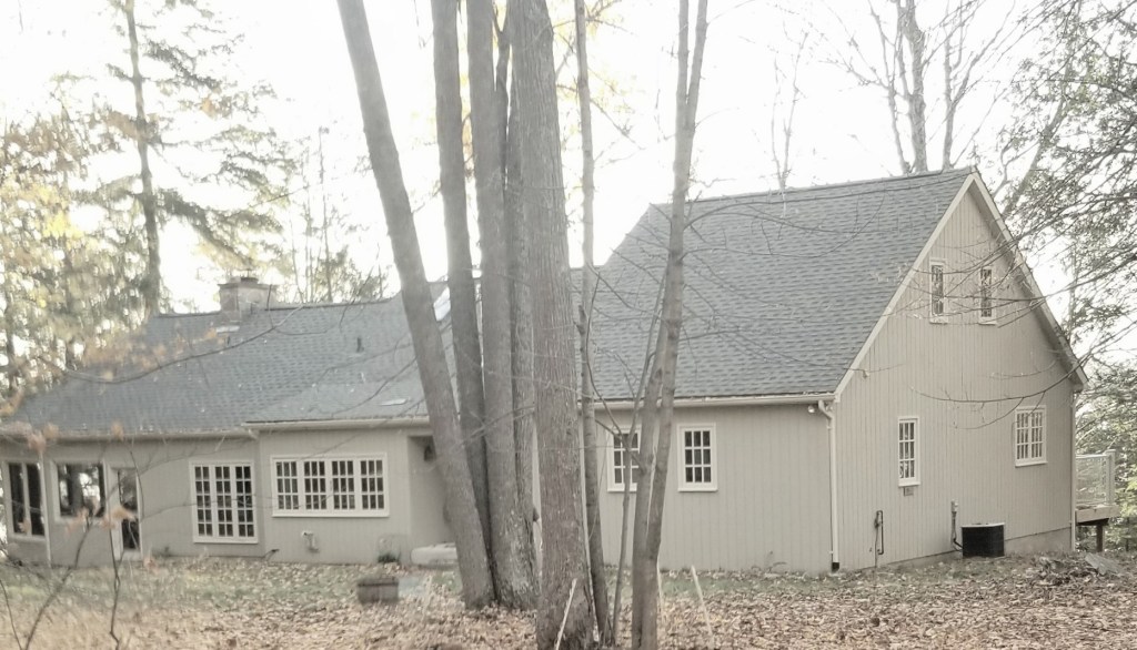 The photo below shows the cottage after the shingles were replaced and before it was painted. It replaced a brown roof and transformed the look.