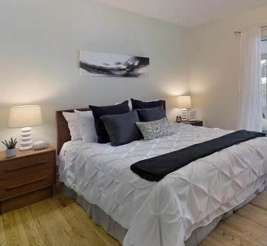 Imagine the room in the picture below is a model home, but actually, it’s a house in Aurora that I have staged. We would be attracted to its beautiful wooden floors and impressive windows. The white curtains on these windows not only enhance their shape but also improve the overall feeling of the space. So, when setting up a family home for sale, the aim is to highlight its good features using contemporary furniture.