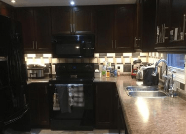 The Orillia homeowners were ready to breathe new life into their tired, brown countertops that had seen better days. Eleanor, one of the owners, wished to brighten her dark kitchen. So, I recommended they consider light-coloured quartz countertops to brighten the space, aligning with Eleanor’s goal. As you can see from the photo above, the white kitchen countertop effectively transformed the room, making it lighter and brighter! Click the link to find out more about this project. https://lynteriors.wordpress.com/2021/04/20/kitchen-remodeling-ideas/