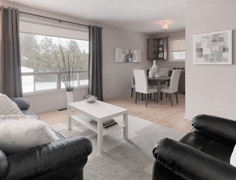 Editing unnecessary furniture goes a long way to keeping the relationship of the furniture in the room from feeling closed in. For example, in the photo below there is not a lot of furniture in this living and dining room.