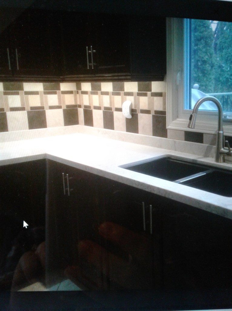 For example, in the photo above, the walls are a warm neutral taupe. The table and chairs have a warm creamy white finish that coordinates with the kitchen cabinets. The oatmeal beige fabric on the chairs picks up the beige on the kitchen counter and backsplash. It also picks up the gray/beige wall paint colour.